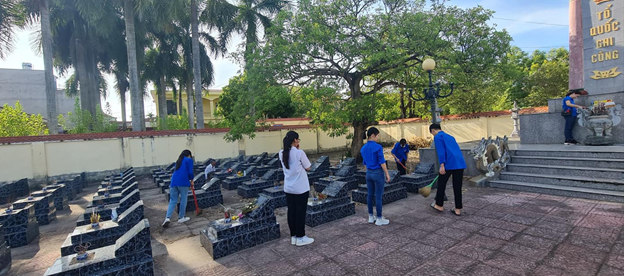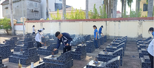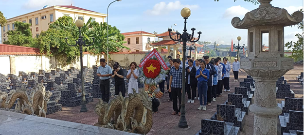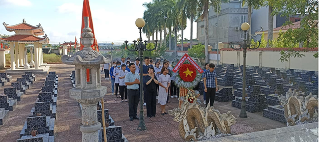 Trong không khí trang nghiêm, thành kính, thầy Ngô Hồng Tân, Bí thư Đảng bộ, Hiệu trưởng nhà trường cùng với các thầy cô trong Ban giám hiệu, đại diện Công đoàn nhà trường, Ban thường vụ Đoàn thanh niên , các thầy cô chủ nhiệm và các em học sinh đã kính cẩn làm lễ dâng hương tại Đài tưởng niệm, trang nghiêm mặc niệm tưởng nhớ sự hy sinh của các anh hùng liệt sĩ cho sự nghiệp giải phóng dân tộc. Đoàn cũng tiến hành dâng hương lên từng phần mộ liệt sĩ bày tỏ tấm lòng tri ân tới công lao to lớn của các anh hùng liệt sĩ – những người con ưu tú của quê hương Hải Phòng đã không tiếc máu xương, anh dũng ngã xuống vì độc lập, tự do của dân tộc. Hoạt động ý nghĩa trên thể hiện đạo lí “Uống nước nhớ nguồn”, tỏ lòng tri ân của tuổi trẻ THPT Trần Hưng Đạo đối với các thế hệ đi trước, nhắc nhở mỗi học sinh về truyền thống yêu nước, tự hào dân tộc, về trách nhiệm phải sống, học tập, lao động và bảo vệ Tổ quốc, xứng đáng với sự hi sinh, công lao to lớn của các thế hệ cha anh.